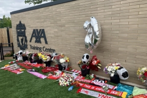 体育资讯7月8日讯 据利物浦回声报记者Jamie Greer报道,今天早上,利物浦季前训练首日开始前,在AXA训练中心外球迷自发悼念若塔。